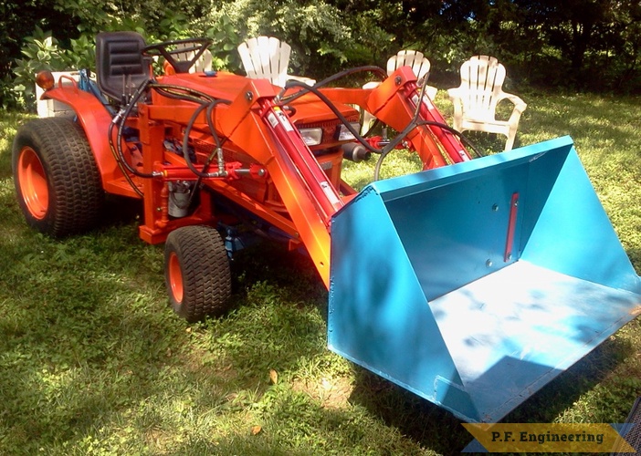 Dennis M. in Stewiacke, Nova Scotia, Canada built this loader for his Kubota B5100 4WD compact tractor, nice Job!