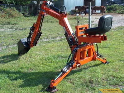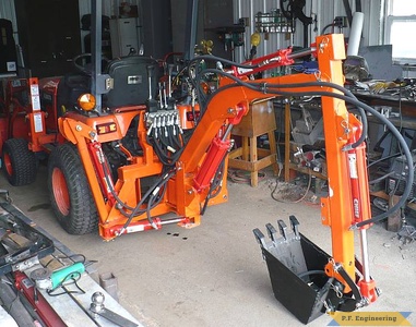 here is a nice example of the Micro Hoe on a Kubota B6000 compact tractor. if this machine belongs to you please email me and i can attach your first name and location to these pics!